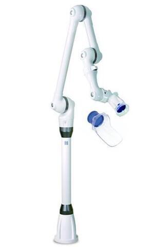これは、治療中に患者さんのお口の近くに設置し、空気中に広がる前に細かな粒子や飛沫を強力に吸い込んでくれる機器です。見た目は少し大きめのアームのような形をしており、音はしますが、痛みや違和感はまったくありません。